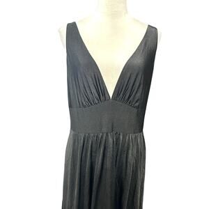 La Femme Formal Maxi Gown Deep V-Neck Zipped Open Back Sleeveless Black 16 NWOT