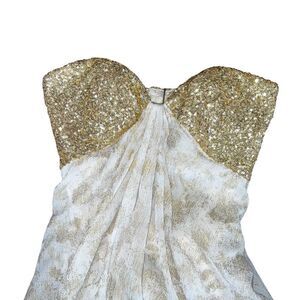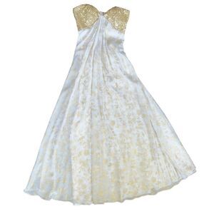 La Femme Gold Sequin Sweetheart A-Line Strapless Maxi Gown Size 2 Formal Prom