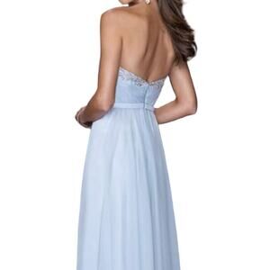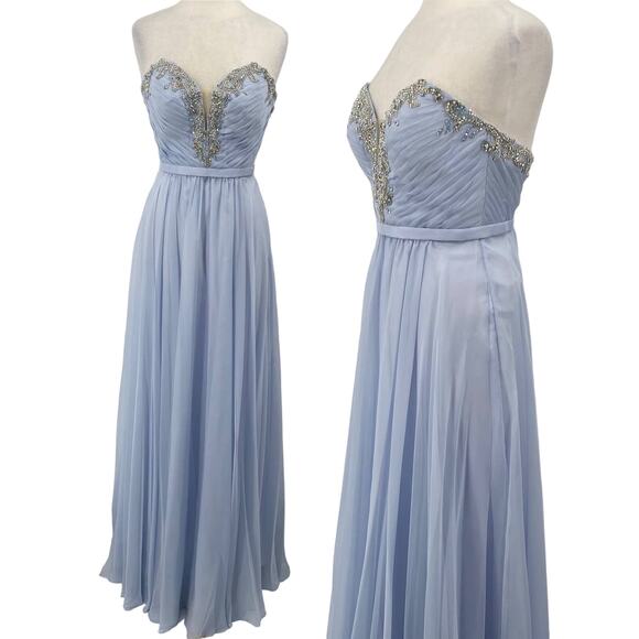 La Femme Gown Crystal Embellished Illusion Sweetheart Strapless Pale Blue NEW