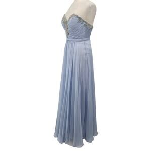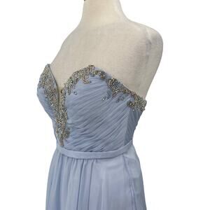 La Femme Gown Crystal Embellished Illusion Sweetheart Strapless Pale Blue NEW 8