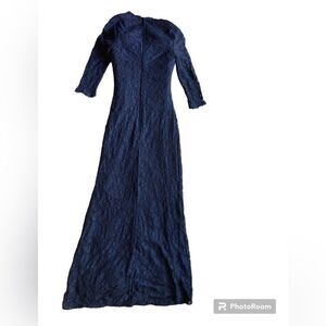 Stretch Floral Lace, Quarter Sleeves, Scalloped Details, Illusion Full Back, Back Zipper Closure, Full Length Hem