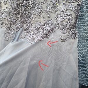 New with tags with multiple **FLAWS**: Please reference photos. Several large fabric runs on both the front and back skirt. Areas of staining throughout.