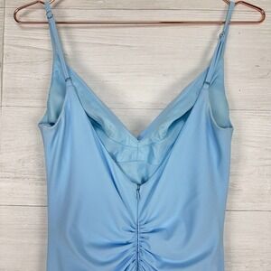 La Femme Long Formal Evening Gown Size 8 Drape Neck Jersey Cloud Blue #30626