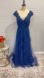 La Femme Marine Blue Short Sleeve Lace Gown with Cascading Embellishment Reemoly