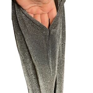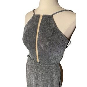 La Femme Metallic Shimmery Formal Gown High Slit Low Back Silver 0 Sexy HoCo