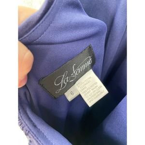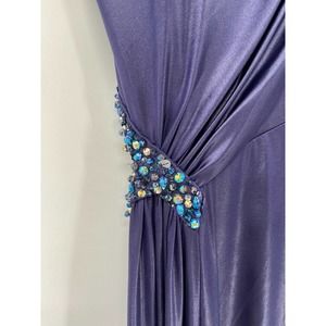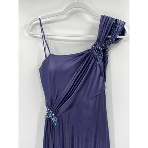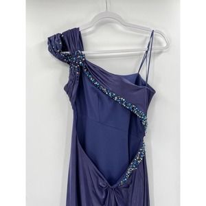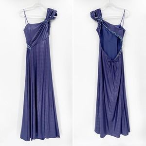 La Femme Navy Blue Beaded One Shoulder Open Back Maxi Evening Gown Size 6