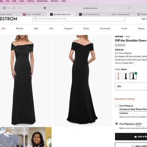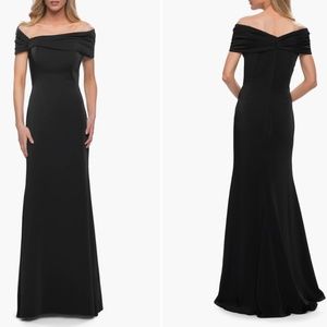La Femme: Off the Shoulder Gown Black (NWT) Department Store: Nordstrom -Note: Came from my Nordstrom Pallet Condition: New with tag, in perfect condition <3 -Note: All of my clothing comes from a smoke-free home! - Size: 14 Measurements: -Pit to pit: 21 inches -Waist: 19 inches -Length: 60 inches Details: An elegant off-the-shoulder neckline frames a floor-length gown that skims your figure and flares out gently into a trumpet skirt. -Hidden back-zip closure -Off-the-shoulder neck -Short sleeves -Lined -Material: 100% polyester -Care: Spot clean Item Number: XL0016