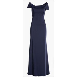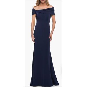 La Femme Off the Shoulder Gown in Navy Blue NWT Size 2