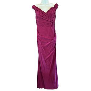 La Femme Off-the-Shoulder Long Prom Dress 31677 in Dark Wine NWT Size 10