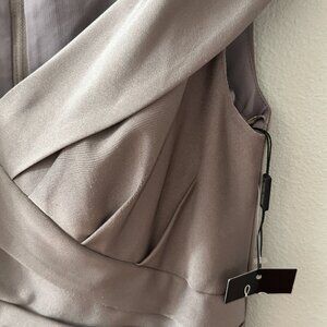 New with part of a tag, a beautiful pewter gray gown from La Femme. Women's size 6.
