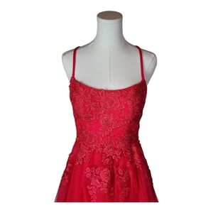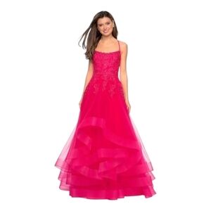 La Femme Pink Lace Tulle Gown Size 4 Prom Formal Dress Crisscross Back