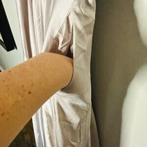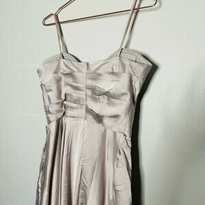 La Femme Pleated Bodice Strapless Silver Satin High Slit Gown Dress size 12