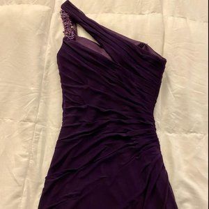 This fitted darling unveils an asymmetrical neckline with a cutout detail in back.