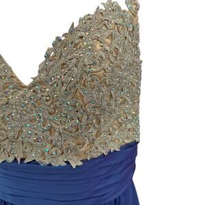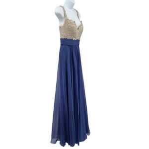 La Femme Prom Dress SZ 6 Blue Violet Formal Gown Embellished Lace Top Sleeveless