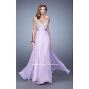 La Femme Prom Dress SZ 6 Pale Purple Formal Gown Embellished Lace Top Sleeveless