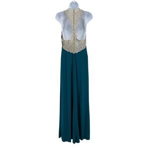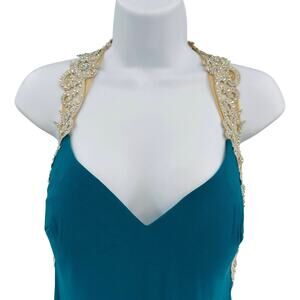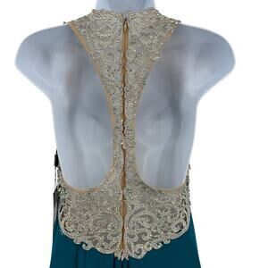 La Femme Prom Dress SZ 6 Teal Sleeveless Formal Embellished Lace Strap Racerback