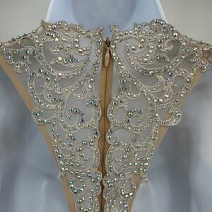 Make a statement in this gorgeous La Femme Prom Dress, size 6, featuring a vibrant teal color and intricate embellished lace detailing. The fitted bodice is designed with delicate straps and a striking racerback, combining elegance with a modern edge. Ideal for prom, formal dances, or evening galas, this sleeveless gown ensures you’ll shine from every angle.