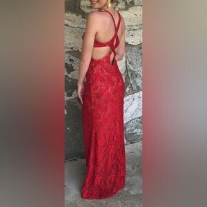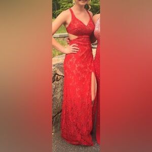 La Femme Red Lace Cut out Prom Dress Gown 4