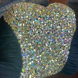 This dress is not missing any rhinestones or Jules, although there are a few that are a little loose