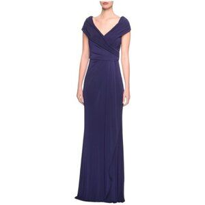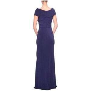 La Femme Ruched Jersey Column Gown in Navy Size 10