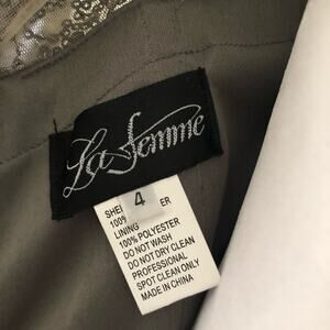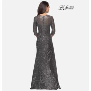 La Femme - Sequined, Shirred Trumpet Dress in Gunmetal NWT Size 4