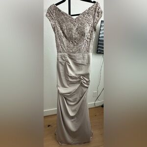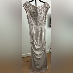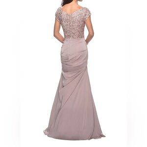 La Femme | Short Sleeve Embroidered Bodice Ruched Mermaid Gown | NWT