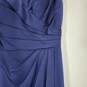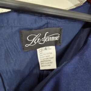 La Femme Size 4 Surplice Off the Shoulder Column Gown Navy Blue Prom Bridesmaid
