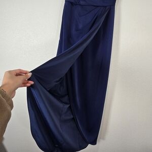La Femme Surplice Off the Shoulder Column Gown Navy Blue Size 4