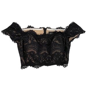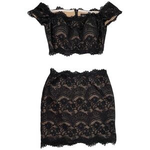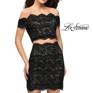 La Femme Two Piece Cocktail Prom Lace Set Size 10 Black Off the Shoulder Formal