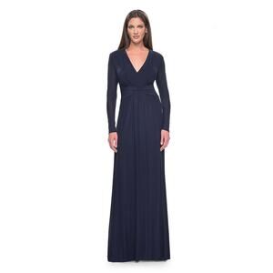 La Femme V-Neckline Longsleeve A-Line Dress in Navy, size 14, NWT