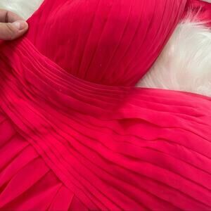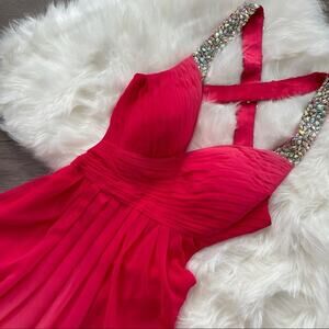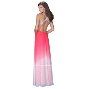 La Femme Watermelon Pink Ombré Gemstone Open Back High Slit Chiffon Gown Dress 2