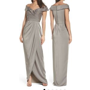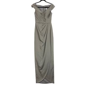 La Femme Womens size 0 dress Pewter Surplice off the shoulder column gown C0739