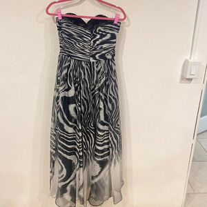La Femme Zebra Print Strapless Gown Size 2 VGUC