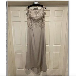 La Femme off the shoulder light taupe embroidered bodice dress size 14