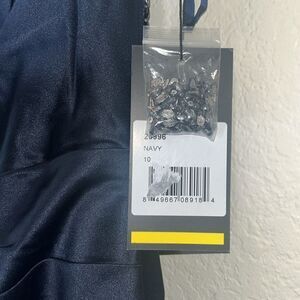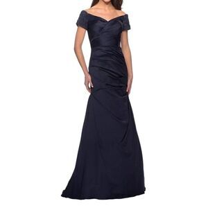 La Femme 25996 Navy Off the Shoulder Beaded Satin Trumpet Formal NWT Sz10 $599