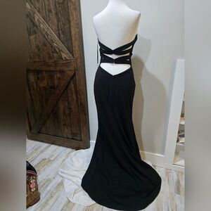 La Femme 27035 Strapless crisscross strappy back Gown NWT Size 10 Black