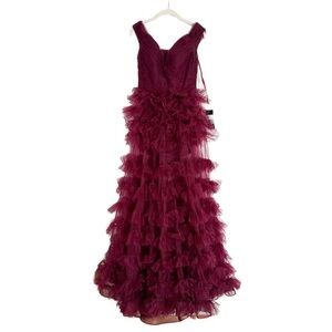La Femme 28804 Dark Berry A-Line Off The Shoulder Tiered Maxi Dress Size 8 NWT