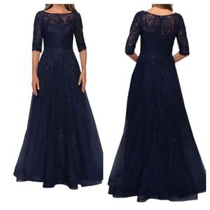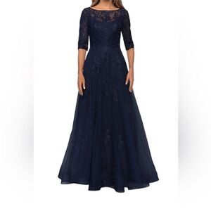 Formal, prom, wedding guest, mother of the bride, bridesmaid, cocktail, gown, lace, tulle, navy