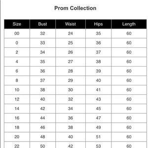 Size chart on the photo