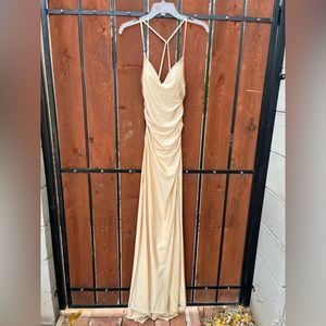 La Femme Long Criss Cross Back Dress Gown 28206 in Nude Size 2