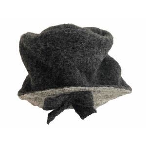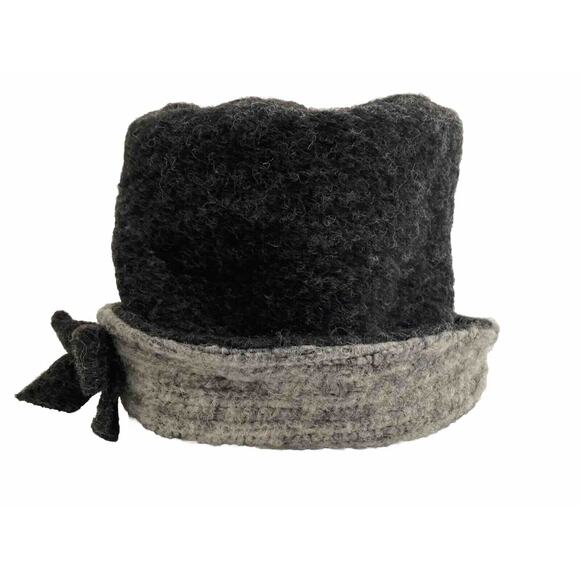 La Fenice Florence Italy Wool Blend Scrunchy Cloche Hat Bow Gray Made in Italy