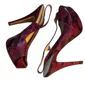 La Fenice Venezia pink black snake print platform open toe sling back heels Sz 9