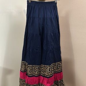 La Fille Navy Maxi Festive Tribal Boho Skirt size S