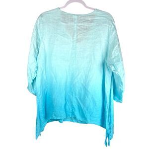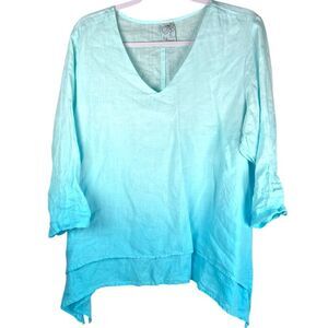 La Fixsun Blue Ombre Dip Dye 100% Linen V-Neck Double Layer Tunic Top Size Small