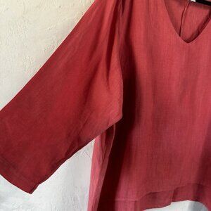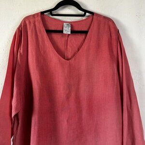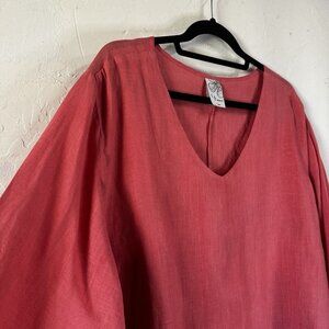 La Fixsun Pink Linen V-neck Tunic Top Drop Pocket Smock Artsy Oversize XL 1X