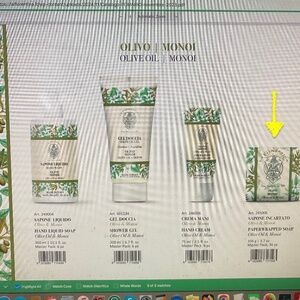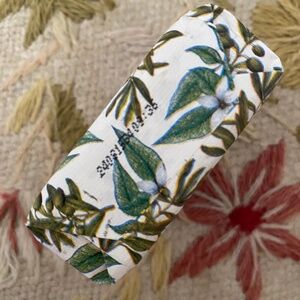 Straight from Florence, Italy, this is the newest soap/scent, Olive Oil & Monoi, in La Florentina's "Pomario" (Orchard) Collection. It is a small, square-shaped soap, with a lovely paper wrapping and design. It is 3.7 ounces/106 grams. Made with olive oil and karité (shea) butter. This was gifted to me, but I love floral soaps, and this scent, or lack thereof, just isn't for me.