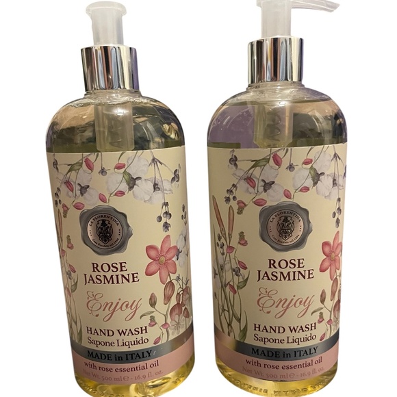 Indulge in Italian luxury with this 2-pack of La Florentina Rose Jasmine Hand Wash. Infused with rose essential oil, this moisturizing soap gently cleanses while leaving hands delicately scented with a romantic floral blend of rose and jasmine.