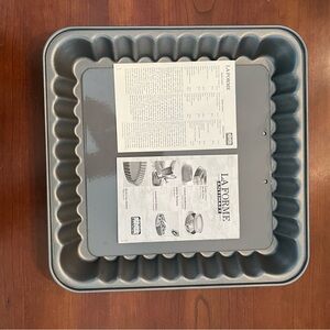 A "La Forme" quiche and fruit tart pan, 30cm square, is a French-made, tin-plated baking pan with a removable bottom, ideal for creating perfect pastries, especially quiches and square-shaped fruit tarts.