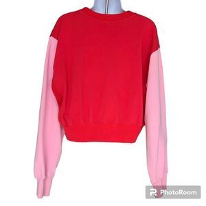 With its cozy and lightweight feel, this cropped sweatshirt offers a vintage vibe and the cutest pink and red color combo.
