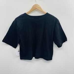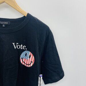 La La Land Creative Co Womens Medium Vote Tshirt Crop Top Happy Face Black 1203